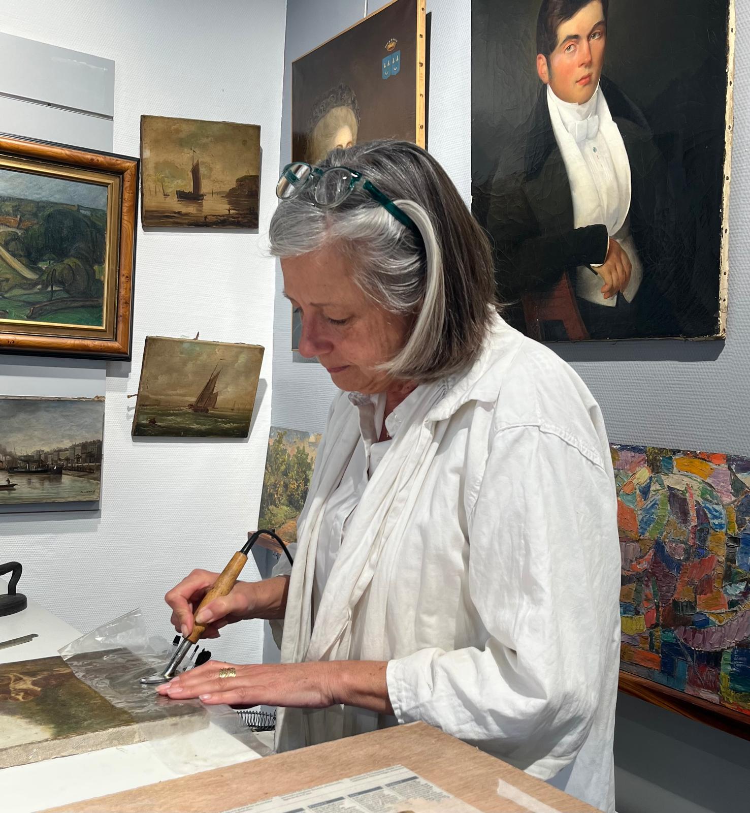 Du nettoyage à la pose du vernis final, en passant par le traitement des déchirures, des soulèvements de la couche picturale, Ariane travaille avec minutie pour redonner éclat et profondeur aux œuvres, quels que soit leur époque, leur format, leur support. Chaque intervention est pensée dans le respect de l’œuvre originale et de l’intention de l’artiste, sans jamais y apposer sa propre interprétation.